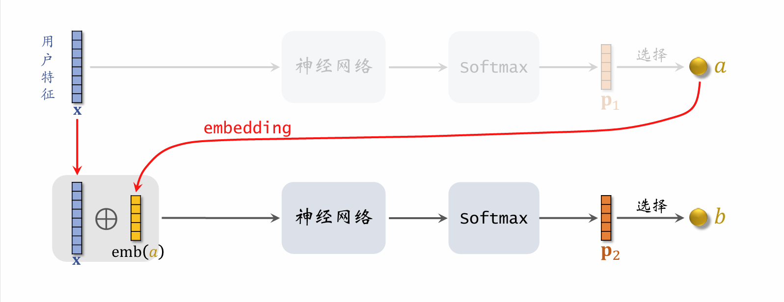 物品 用户点击过物品\longleftarrow _{用户点击过物品} 用户 神经网络的打分\longrightarrow _{神经网络的打分} 路径