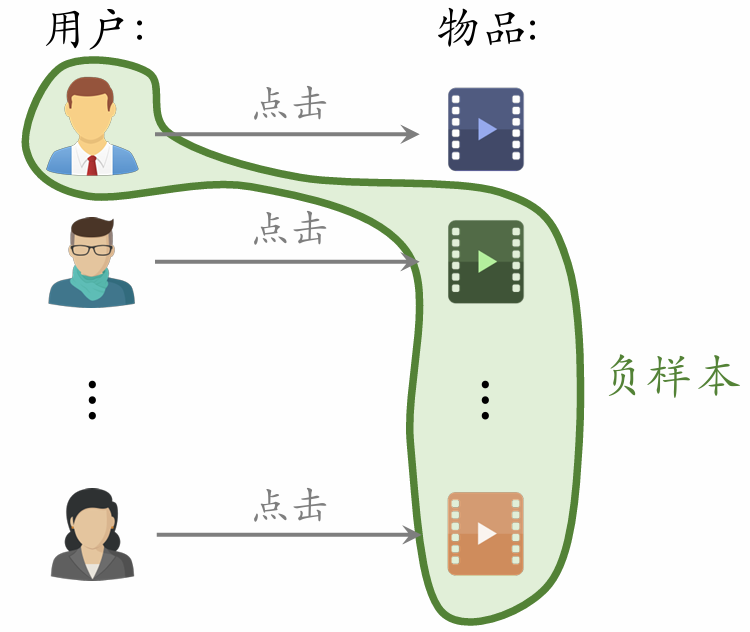 • 用户 ➝ 物品列表:用户近期交互过的 nn 个物品。